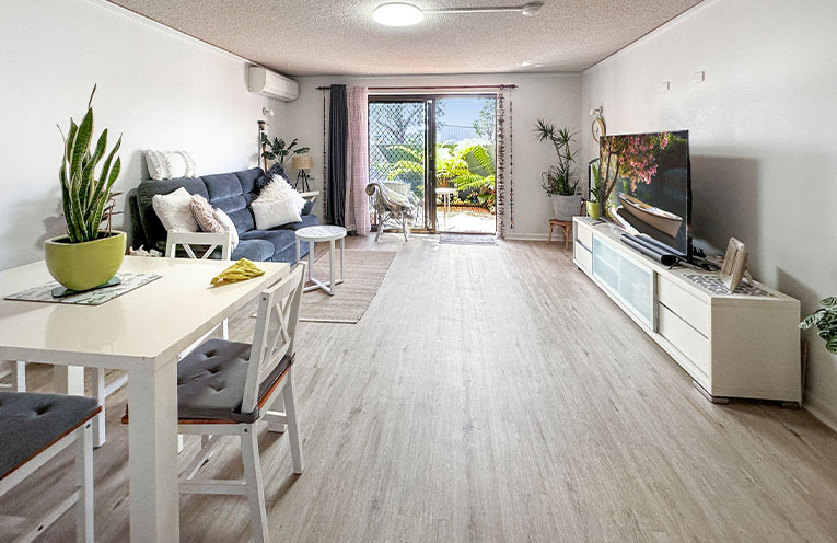 This freshly updated two-bedroom, one-bathroom unit offers a bright, north-facing aspect, ensuring plenty of natural light throughout the day.