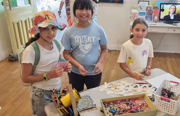 Katie Anderson led visiting kids in the creation of origami cranes, with proceeds also being donated to support the Pindimar/Tea Gardens RFS volunteers.