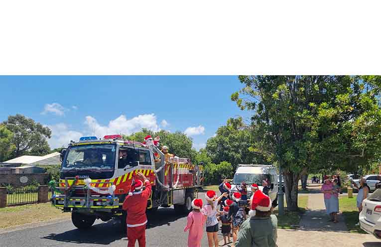 The annual Santa Run, shared among several RFS brigades, took Santa Claus himself to visit the streets of the Myall Coast, delivering some lollies to those patiently waiting in safe areas on what turned out to be a very hot Christmas Eve in Tea Gardens.