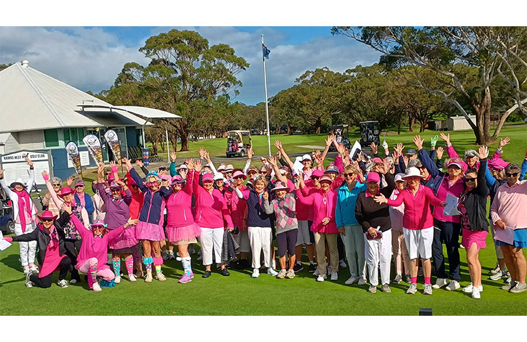 THE 2025 Ladies Charity Day took place last week amid a sea of pink and teal. An excellent field of 72 players and 15 guests enjoyed a morning of golf and an afternoon of fun to raise funds for Breast and Ovarian Cancer Research. This annual event is a highlight of our calendar, supporting a cause close to us all as women: we are always eager to raise funds for research into successful treatments in the hope of finding a cure. It is also a day to reflect, and remember those whose lives have been touched by cancer. So it was marvellous to have Marguerite Miller join us, looking a treat in her sparkling red hat. Marg expressed her gratitude to the ladies for the many messages and gestures of support offered during her ongoing recovery. It brought her courage and joy, and she reminded us that this special bond we share comes from being part of ladies golf at Hawks Nest. Well said, Margeurite!