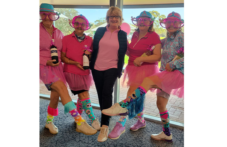 The atmosphere in the clubhouse during the post-match luncheon and entertainment was bubbly and joyful, as our members dug deep for this worthy cause. After sandwiches from Sando’s and a beautiful cake, donated by Mema’s Bakery, the festivities continued. Putt for Dough was very popular, won this year by Carolyn Affleck, and the 100 Board was won by Dawn Wiggins. The raffle was also very well supported, with thanks to our prize donors including Nelson Bay Golf Club, Hawks Nest Pro Shop, Estia, Bohemian Spirit, and Y Knot Ferries. Many of our winners donated their prizes back to the cause, so we raised more than $2,100 on the day. Great work, everyone!