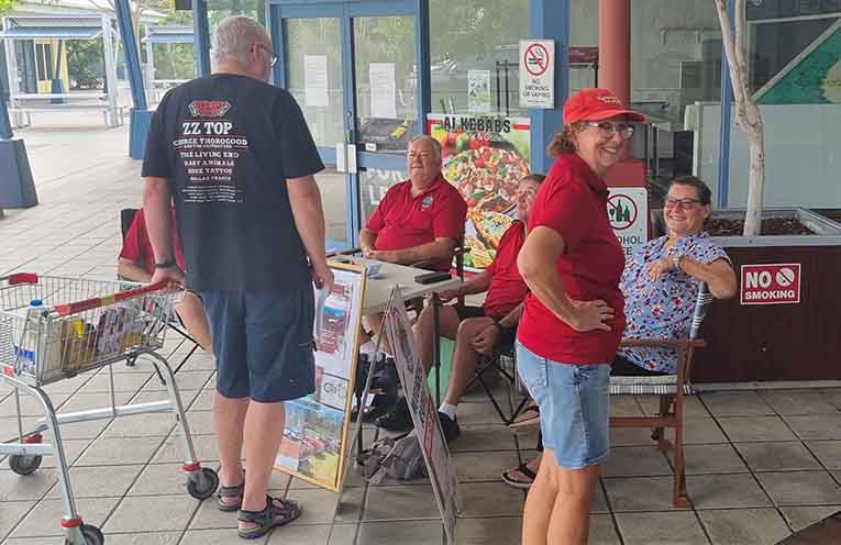 While selling raffle tickets outside Tea Gardens Coles, a few of their beloved automobiles were put on display, including Bob’s green 1960 Wolseley, Jock’s red 1973 Camaro, and Keith’s blue 1970 XW Falcon.