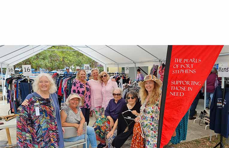 The Pearls of Port Stephens’ perennial Buy My Wardrobe pop-up op shop was a highlight, as were the works of local authors and artists and the home-made treats of the Tea Gardens Red Cross.