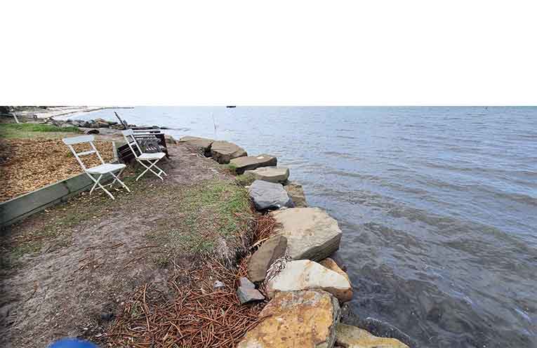 The area around the base of the tree is also facing severe erosion, with clear gaps forming between a previously installed rock barrier and the soil that remains – much like the Tea Gardens riverfront, tidal waters are seeping through the cracks, undermining loose material, and taking it out again.