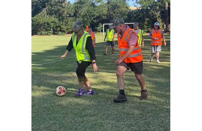LAST Wednesday afternoon the sun was shining brightly through the row of large pines that were offering some welcome shade to play in. We had a good turnout and were able to get two teams of 7 a side with a sub eagerly waiting to get on the field to give someone a well-earned rest. We had a few onlookers who encouraged our players with applause and support, enjoying the game from the sideline.